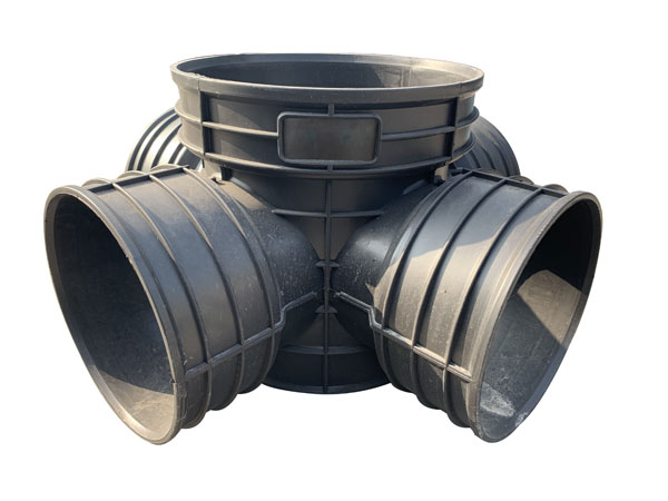 塑料檢查井的井座部分大多采用的是一次性注塑成型,以異徑接頭、變角接頭和橡膠密封圈等配件來達(dá)到改變管徑及角度的連接。塑料檢查井配套開發(fā)了井蓋、井筒和相關(guān)配件,路面載荷通過井蓋、井座作用于檢查井周圍,避免了路面載荷對檢查井的破壞。井座具有上下浮動的功能,可主動適應(yīng)路面的高低變化,同時井筒采用專用井筒,可根據(jù)現(xiàn)場埋設(shè)深度截取相應(yīng)長度,靈活方便。井筒、進(jìn)(出)水管道與井座的連接采用橡膠密封圈柔性承插式連接或者是熱收縮套連接,可適應(yīng)小范圍內(nèi)的角度變化,施工方便快捷,密封性能好、防滲漏,有效防止對地下水的二次污染,是一種環(huán)保節(jié)能建材。